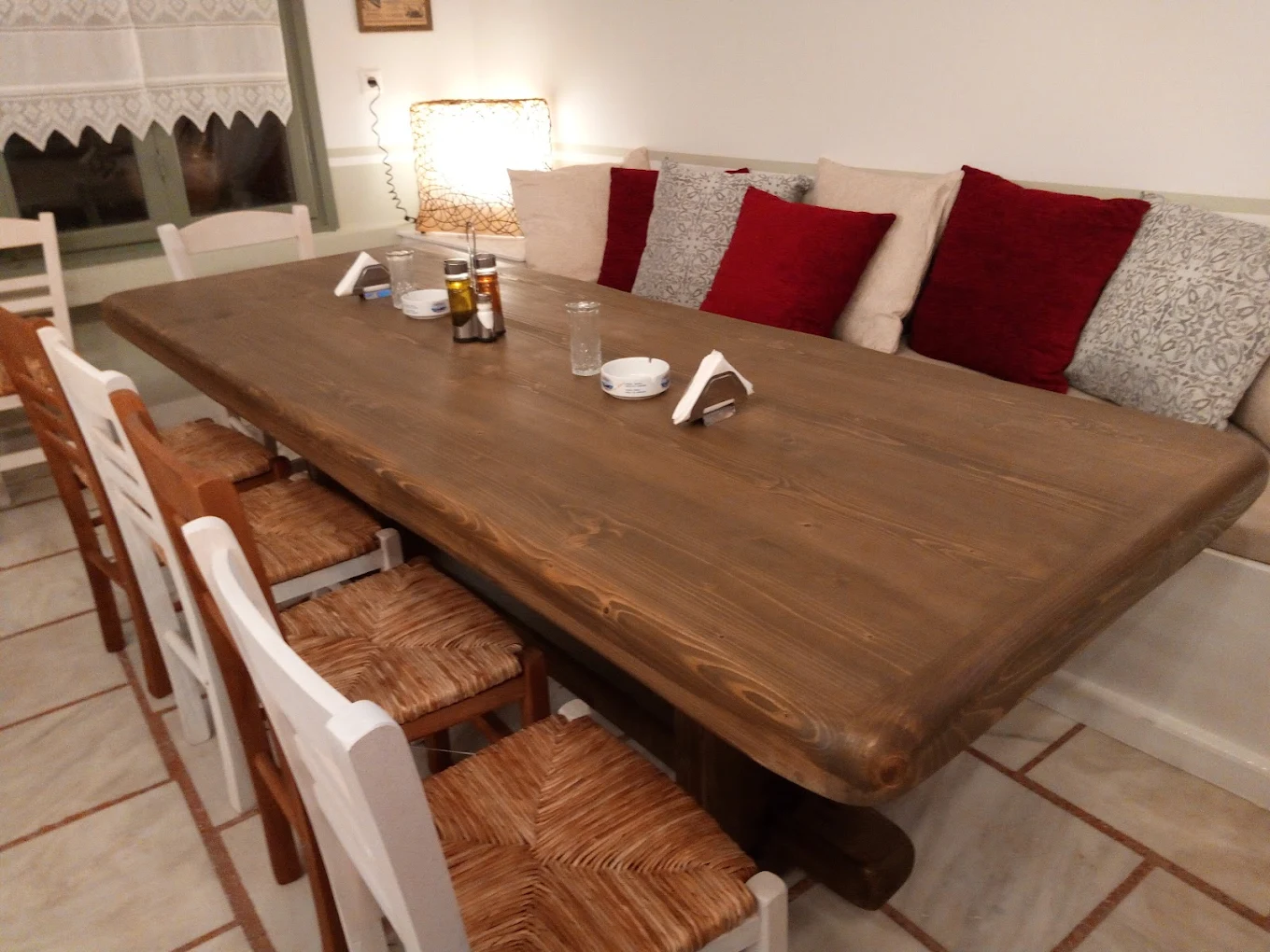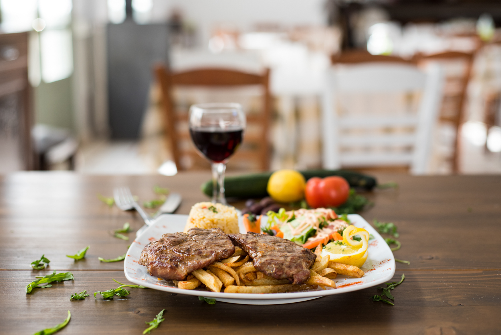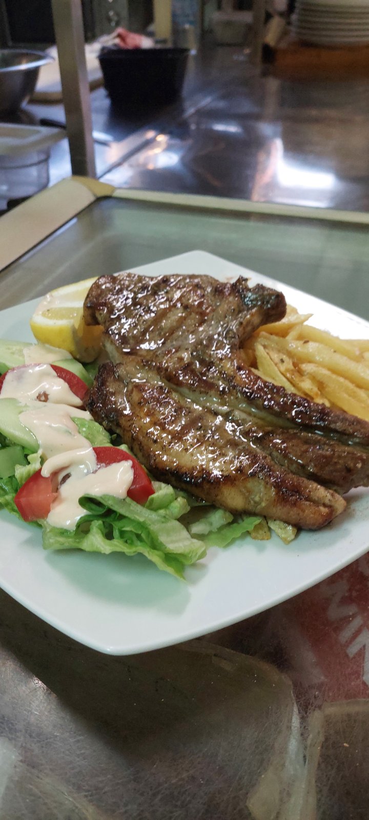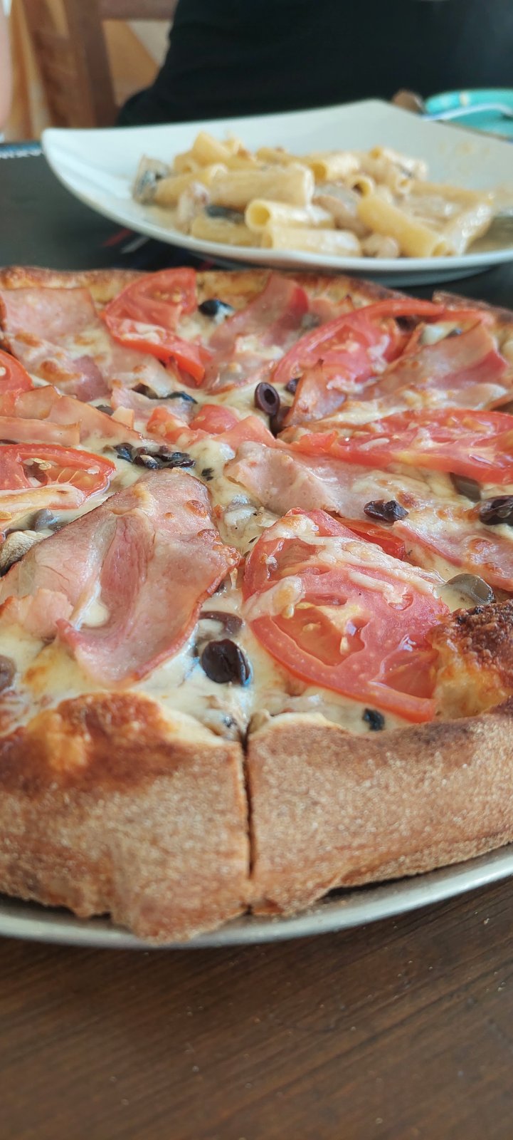 Here you can enjoy wood-fired pizzas, authentic Greek and Italian dishes, and fresh salads prepared with carefully selected local ingredients, all in a warm and welcoming atmosphere.